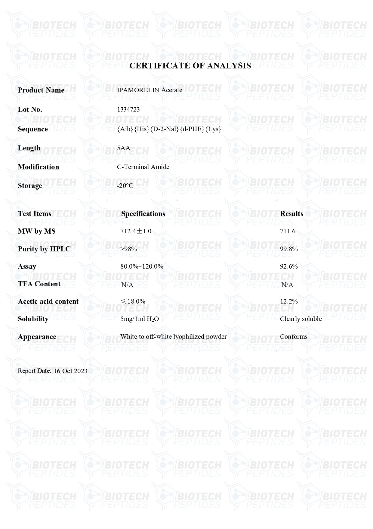 Sequence: Aib-His-D-2Nal-D-Phe-Lys-NH2
